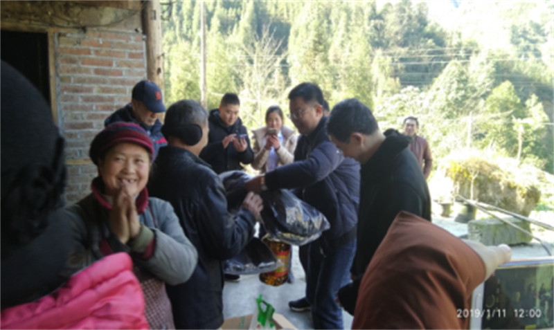 1月10日、11日,公司班子一行通過集中發(fā)放慰問品和走訪慰問貧困戶代表的方式,先后對名山區(qū)車嶺鎮(zhèn)石堰村、蘆山縣大川鎮(zhèn)快樂村開展慰問,為兩個村的159戶建檔立卡貧困戶、貧困老黨員們送上了大米、清油、面粉、掛面、愛心棉衣等慰問物品,將愛心傳達給每一位困難群眾的同時,每到一處,公司領(lǐng)導(dǎo)們都耐心細致的和貧困戶促膝交談,關(guān)心其家庭和收入情況,詳細了解其脫貧情況,并介紹國家扶貧政策、傳達黨委政府對每戶貧困戶的關(guān)心和掛念,引導(dǎo)貧困戶既要感恩黨和政府,又要學會自力更生,鼓勵他們一定要樹立樂觀健康心態(tài),克服困難,用勤勞的雙手早日致富奔康。