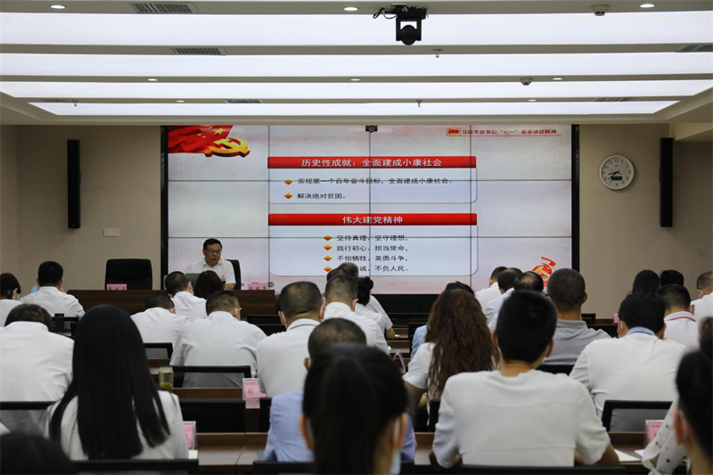 8月6日,集團(tuán)黨委書記、董事長(zhǎng)漆家華對(duì)集團(tuán)黨員、干部進(jìn)行了“學(xué)習(xí)習(xí)近平總書記七一重要講話、貫徹省委九次全會(huì)、市委四屆十次全會(huì)精神”集中宣講。