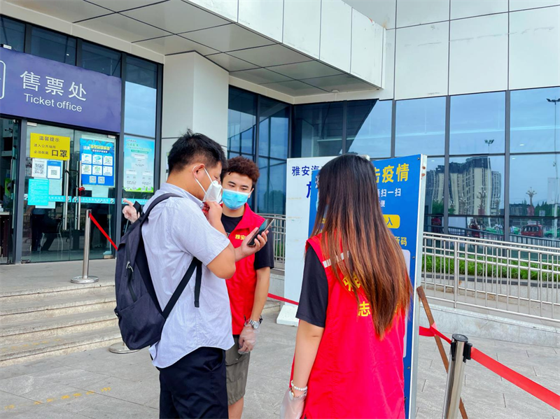 青年志愿者們嚴格遵守雅安市汽車客運站站長葛舉康為大家講解的疫情防控工作要求,積極投身志愿服務,分別在雅安市火車站進出站口、雅安市汽車客運站進站口、售票大廳、候車廳等點位駐守,勸導旅客戴好口罩、查驗場所碼、行程碼及核酸報告,并向乘客宣傳疫情防控知識,時刻提醒旅客保持安全距離,認真維護現(xiàn)場秩序。