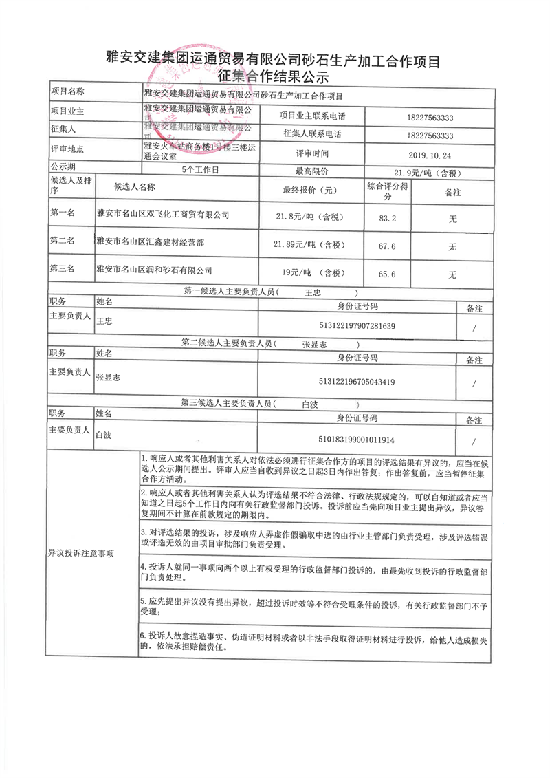 雅安交建集團運通貿(mào)易有限公司砂石生產(chǎn)加工合作項目征集合作結(jié)果公示