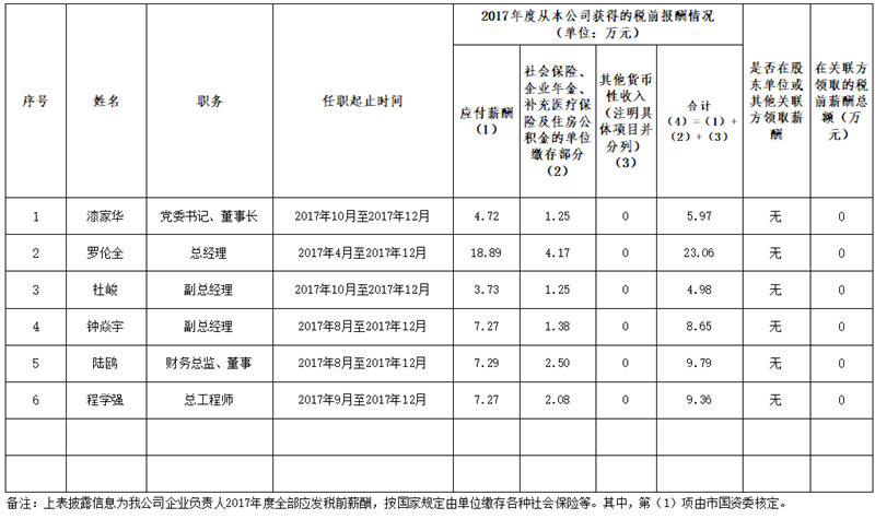 雅安市交通建設(shè)(集團)有限責(zé)任公司企業(yè)負(fù)責(zé)人2017年度薪酬情況公示表