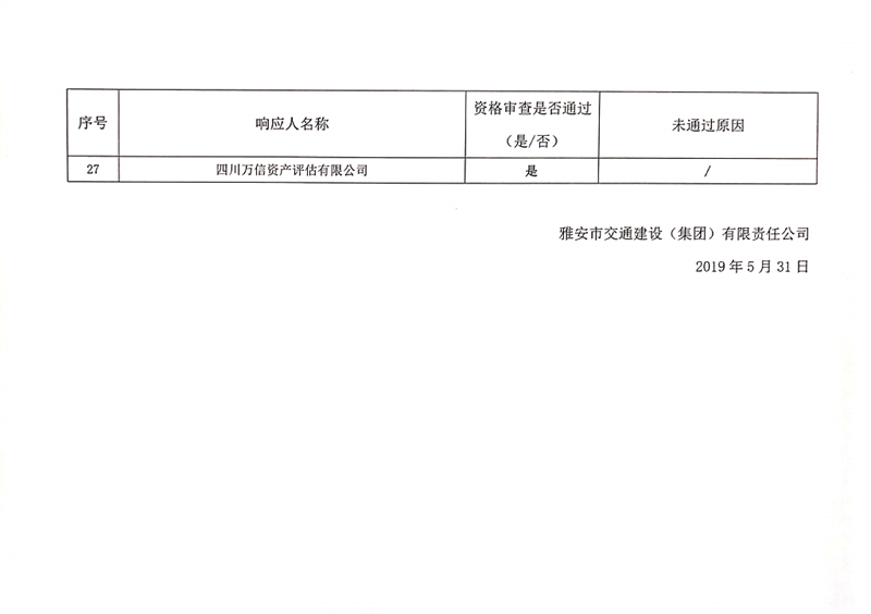 雅安交通建設(shè)(集團(tuán))有限責(zé)任公司資產(chǎn)評估服務(wù)企業(yè)入庫比選結(jié)果