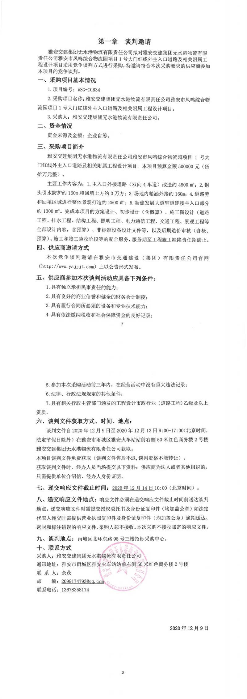雅安交建集團無水港物流有限責(zé)任公司雅安市鳳鳴綜合物流園項目1號大門紅線外主入口道路及相關(guān)附屬工程設(shè)計項目競爭談判公告