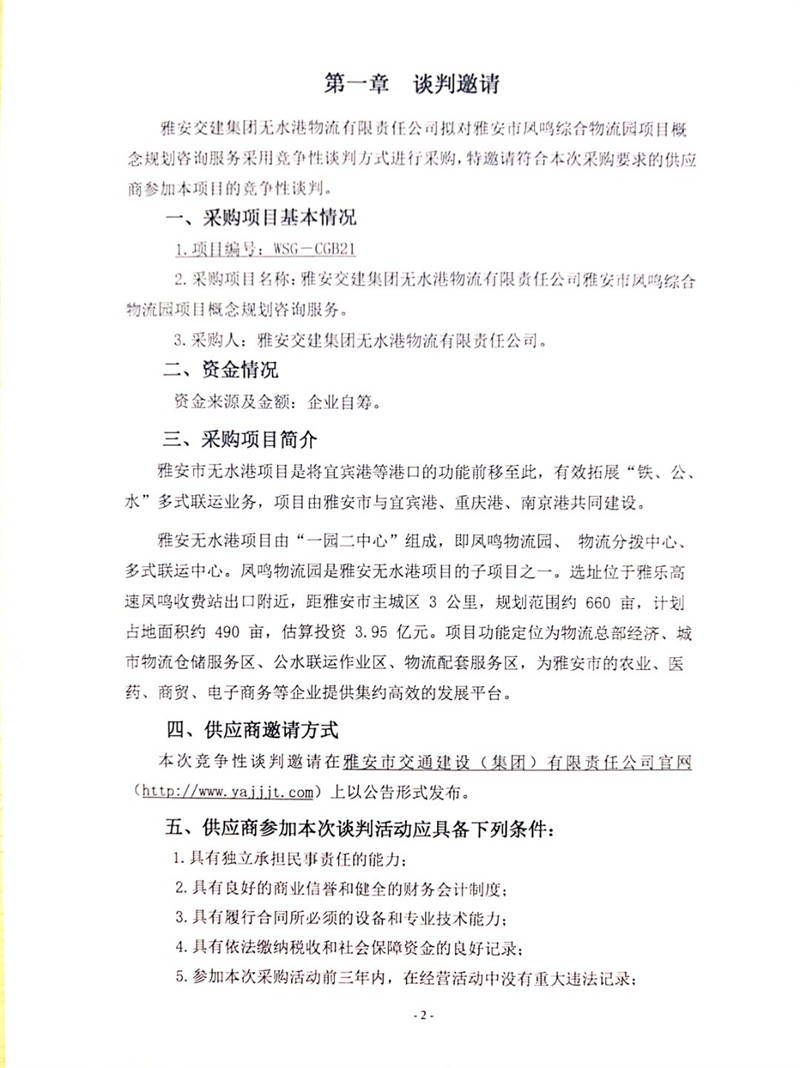 雅安交建集團無水港物流有限責(zé)任公司雅安市鳳鳴綜合物流園項目概念規(guī)劃咨詢服務(wù)競爭性談判公告