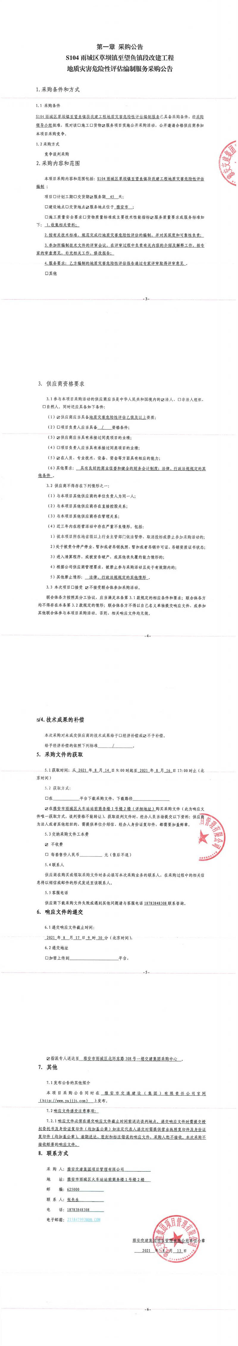 雅安交建集團(tuán)項(xiàng)目管理有限公司S104雨城區(qū)草壩鎮(zhèn)至望魚鎮(zhèn)段改建工程地質(zhì)災(zāi)害危險性評估編制服務(wù)采購公告