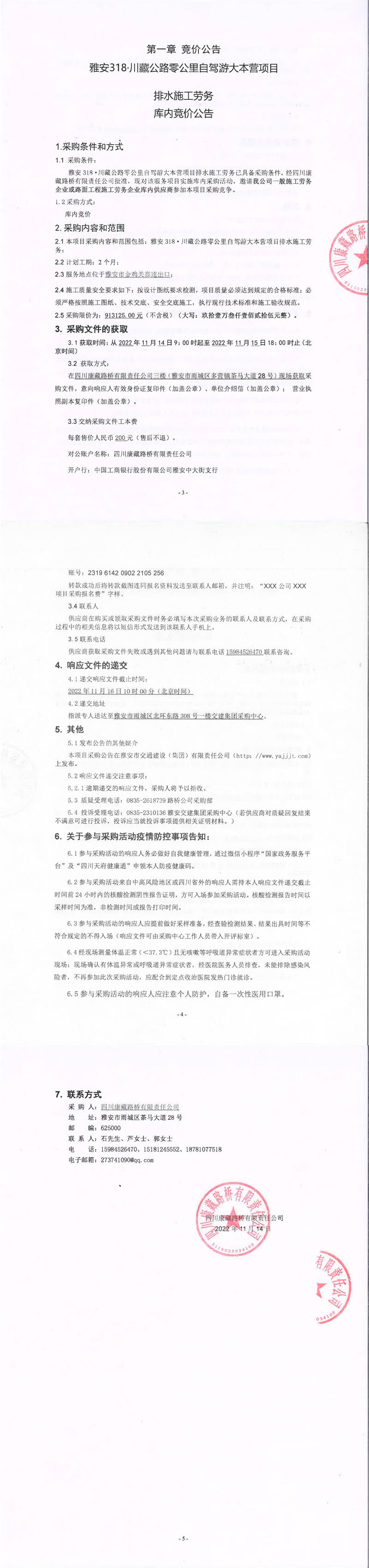 四川康藏路橋有限責任公司雅安318.川藏公路零公里自駕游大本營項目排水施工勞務庫內競價公告