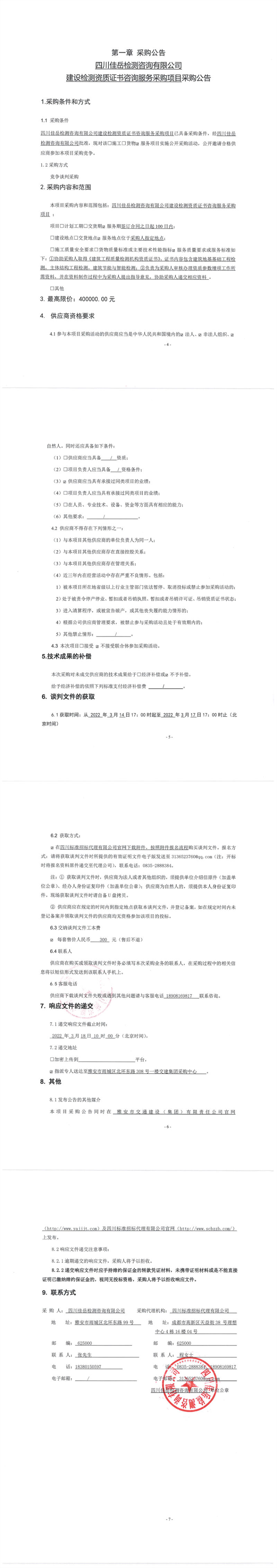 四川佳岳檢測咨詢有限公司建設(shè)檢測資質(zhì)證書咨詢服務(wù)采購項(xiàng)目采購公告