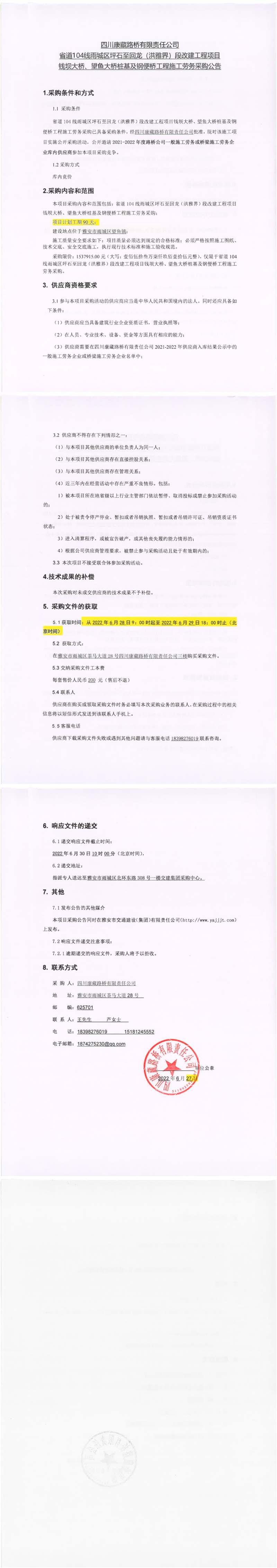 四川康藏路橋有限責(zé)任公司省道104線雨城區(qū)坪石至回龍(洪雅界)段改建工程項(xiàng)目錢(qián)壩大橋、望魚(yú)大橋樁基及鋼便橋工程施工勞務(wù)采購(gòu)公告