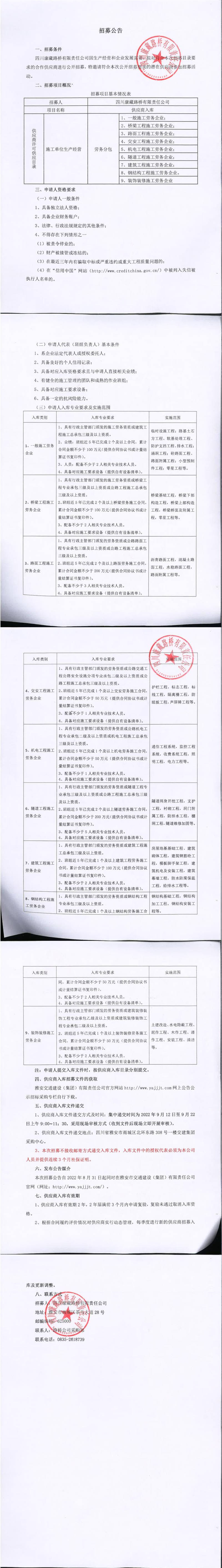 四川康藏路橋有限責(zé)任公司2022年第三季度供應(yīng)商入庫招募文件(點(diǎn)擊自行下載)