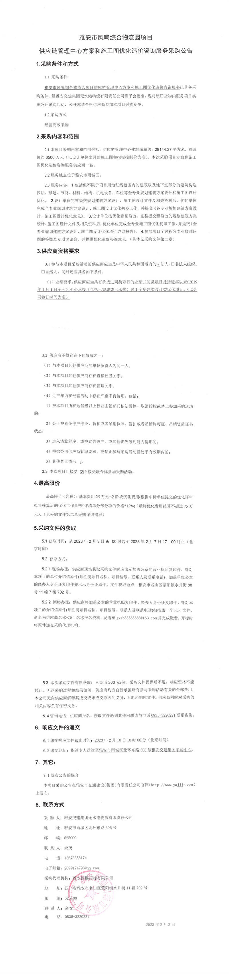 雅安交建集團(tuán)無(wú)水港物流有限責(zé)任公司雅安市鳳鳴綜合物流園項(xiàng)目供應(yīng)鏈管理中心方案和施工圖優(yōu)化造價(jià)咨詢服務(wù)采購(gòu)公告