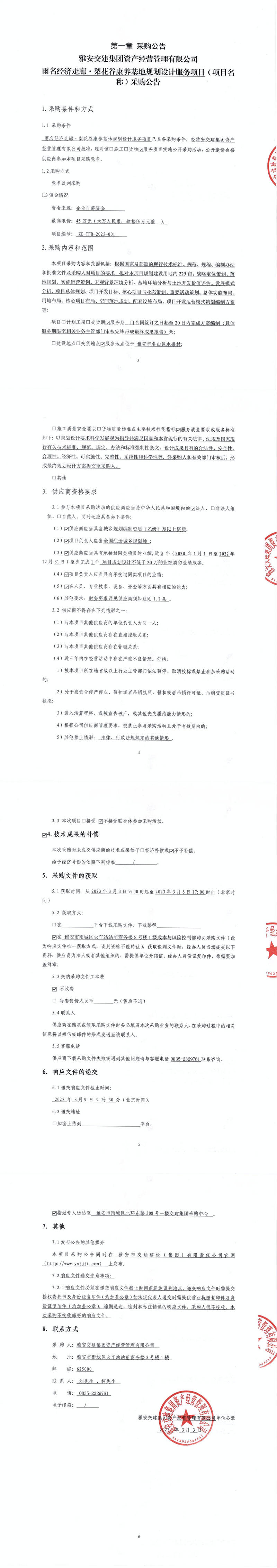 雅安交建集團(tuán)資產(chǎn)經(jīng)營(yíng)管理有限公司雨名經(jīng)濟(jì)走廊·梨花谷康養(yǎng)基地規(guī)劃設(shè)計(jì)服務(wù)項(xiàng)目(項(xiàng)目名稱)采購(gòu)公告