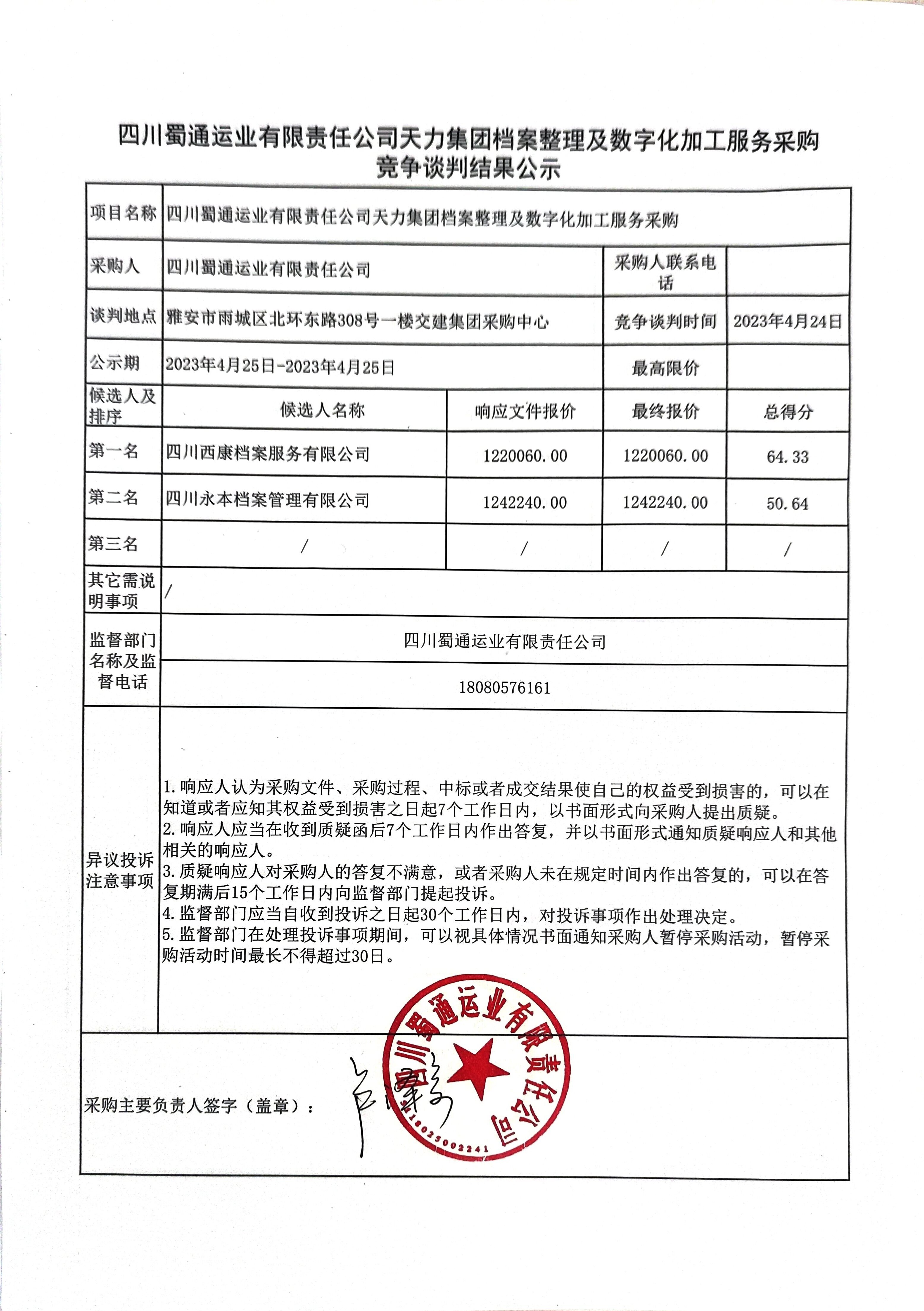 四川蜀通運(yùn)業(yè)有限責(zé)任公司天力集團(tuán)檔案整理及數(shù)字化加工服務(wù)采購競爭談判結(jié)果公示