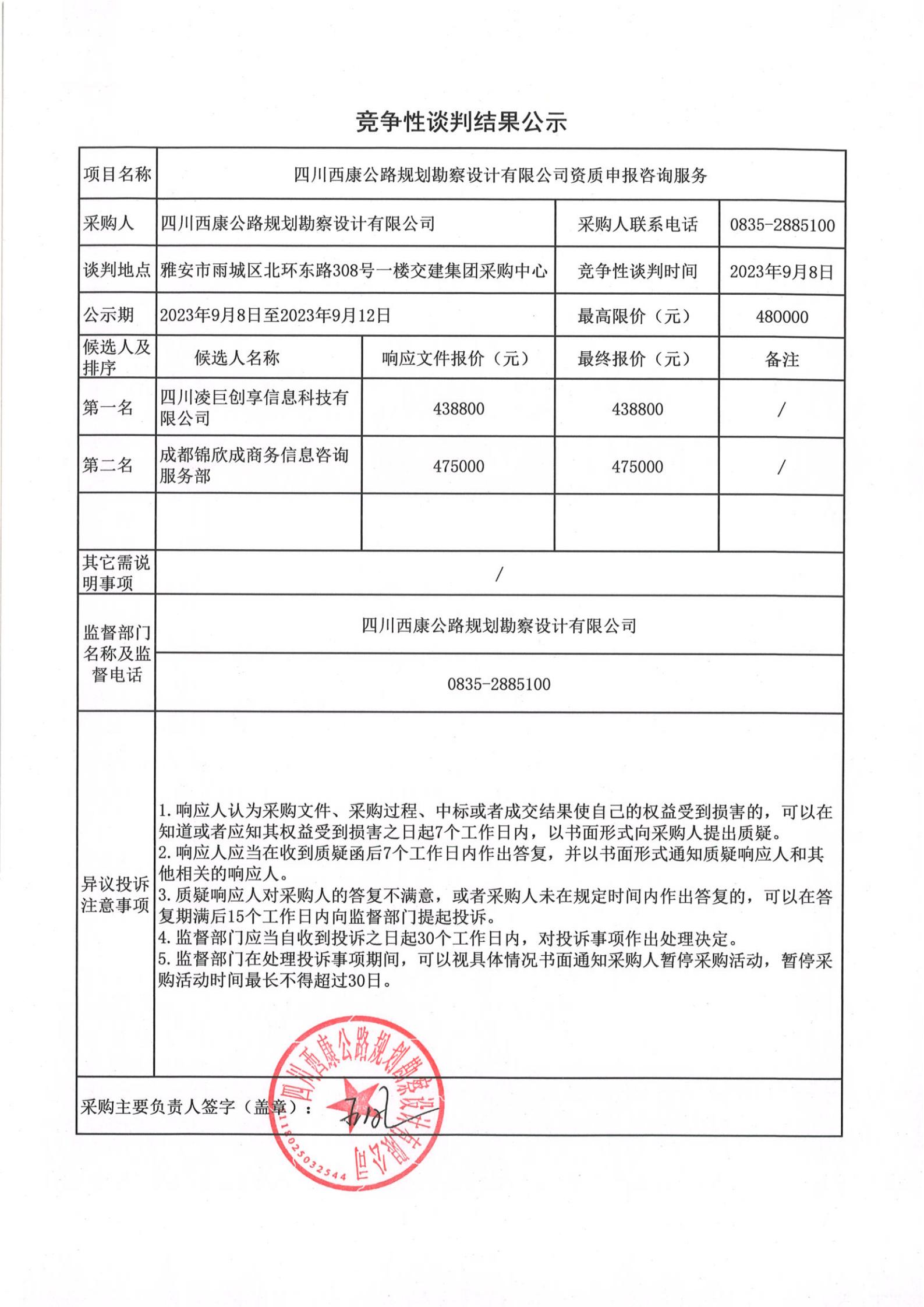 四川西康公路規(guī)劃勘察設計有限公司資質(zhì)申報咨詢服務競爭談判結(jié)果公示