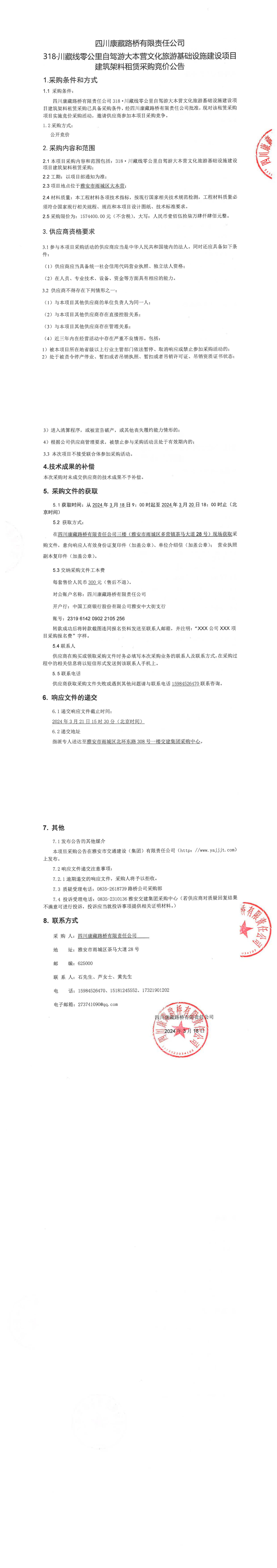 四川康藏路橋有限責任公司318·川藏線零公里自駕游大本營文化旅游基礎(chǔ)設(shè)施建設(shè)項目建筑架料采購公告