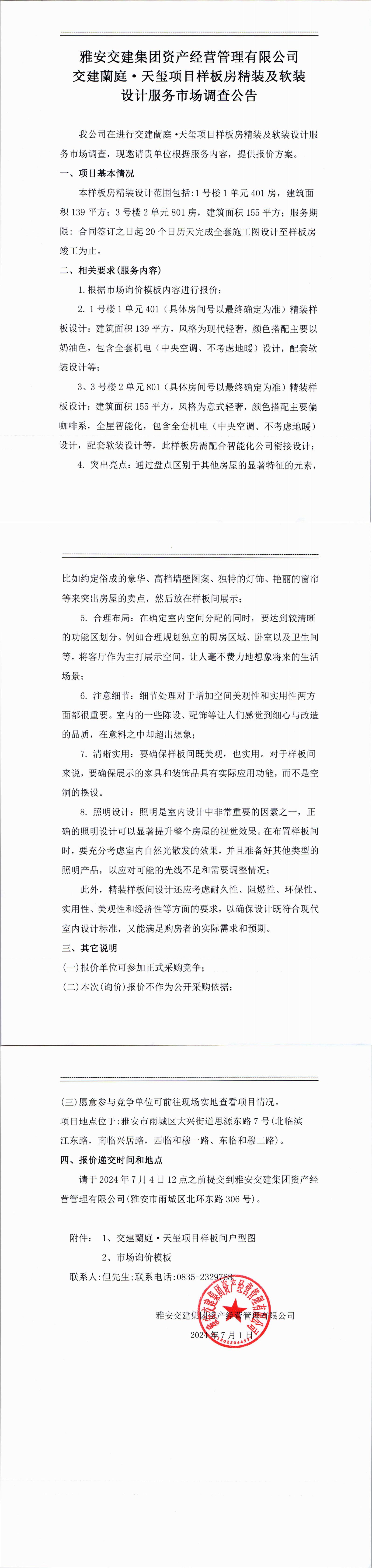雅安交建集團資產(chǎn)經(jīng)營管理有限公司交建蘭庭·天璽項目樣板房精裝及軟裝設計服務市場調(diào)查公告