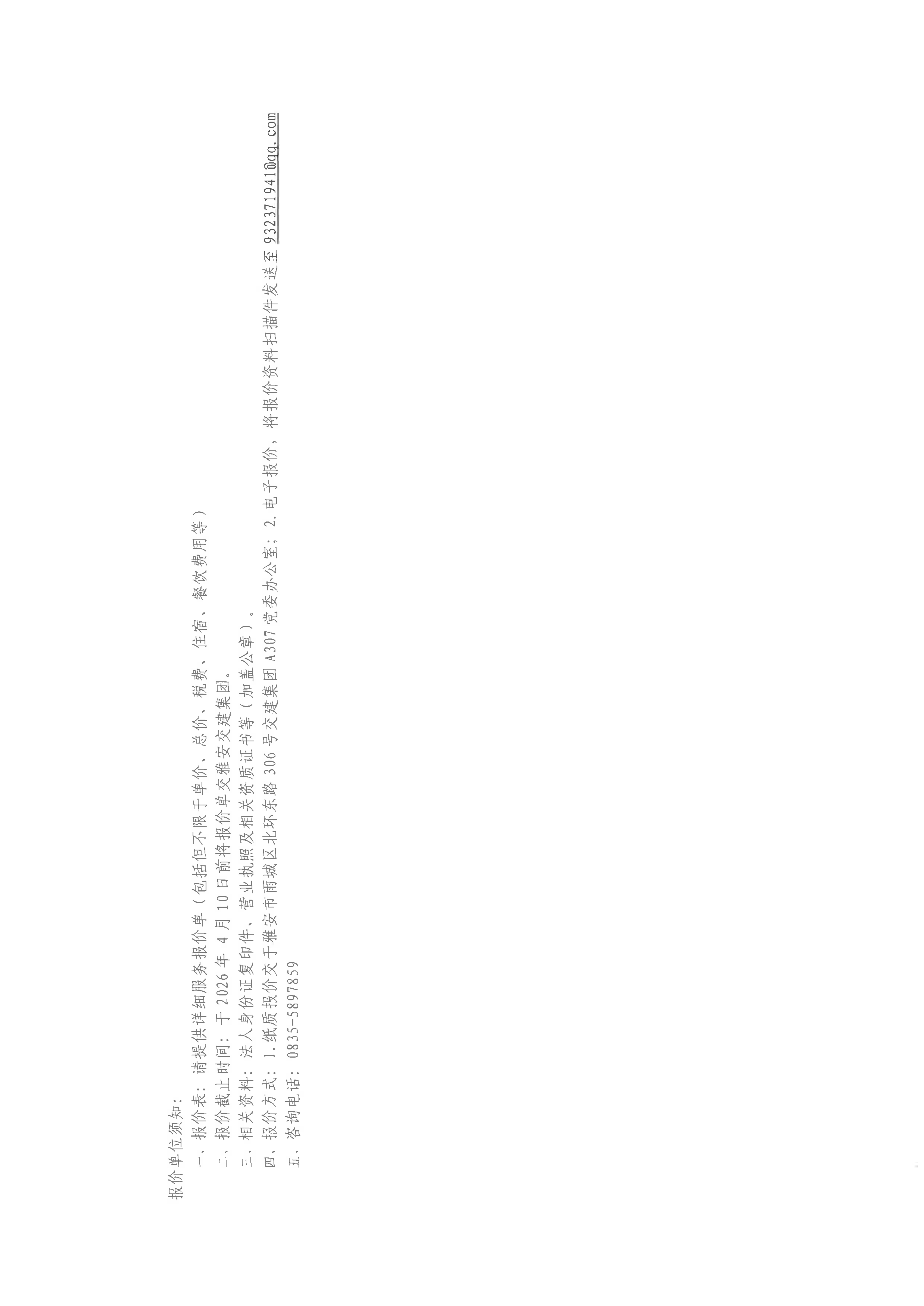 關(guān)于雅安市交通建設(shè)(集團(tuán))有限責(zé)任公司定制化信息專報(bào)服務(wù)采購(gòu)限價(jià)的詢價(jià)函