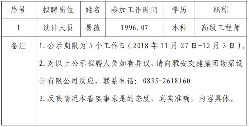 雅安交建集團(tuán)勘察設(shè)計(jì)有限公司擬聘用人員公示