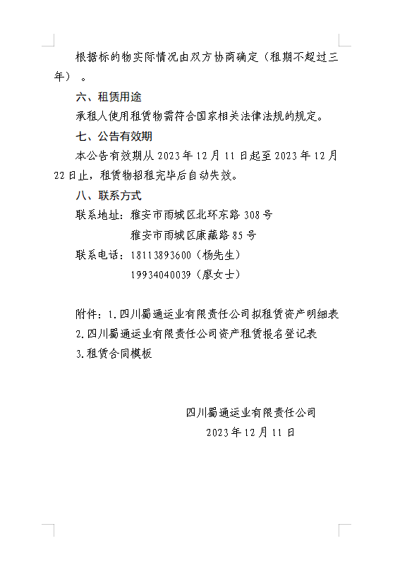四川蜀通運業(yè)有限責任公司關于康藏路85號辦公樓4、5、7樓資產租賃公告附件