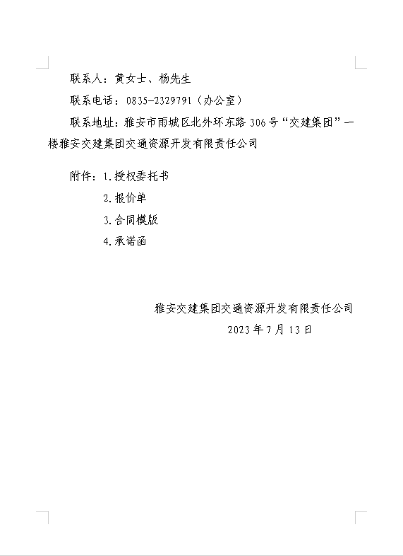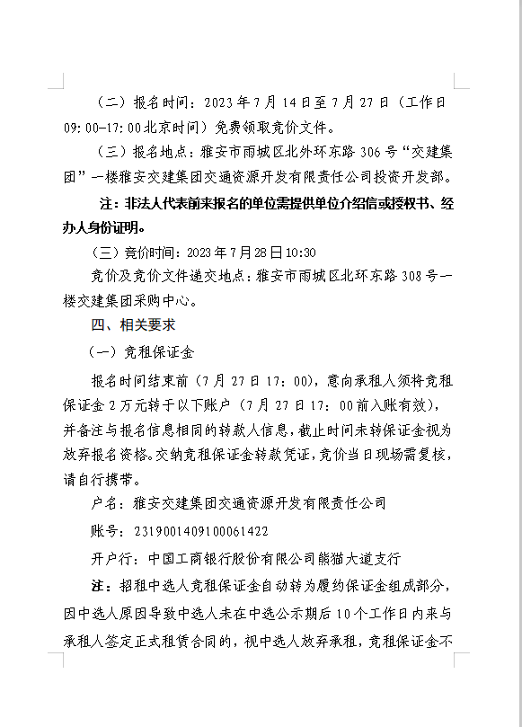 雅安交建集團(tuán)交通資源開(kāi)發(fā)有限責(zé)任公司雨名快速通道名山服務(wù)區(qū)場(chǎng)地(游樂(lè)類項(xiàng)目)招租公告附件