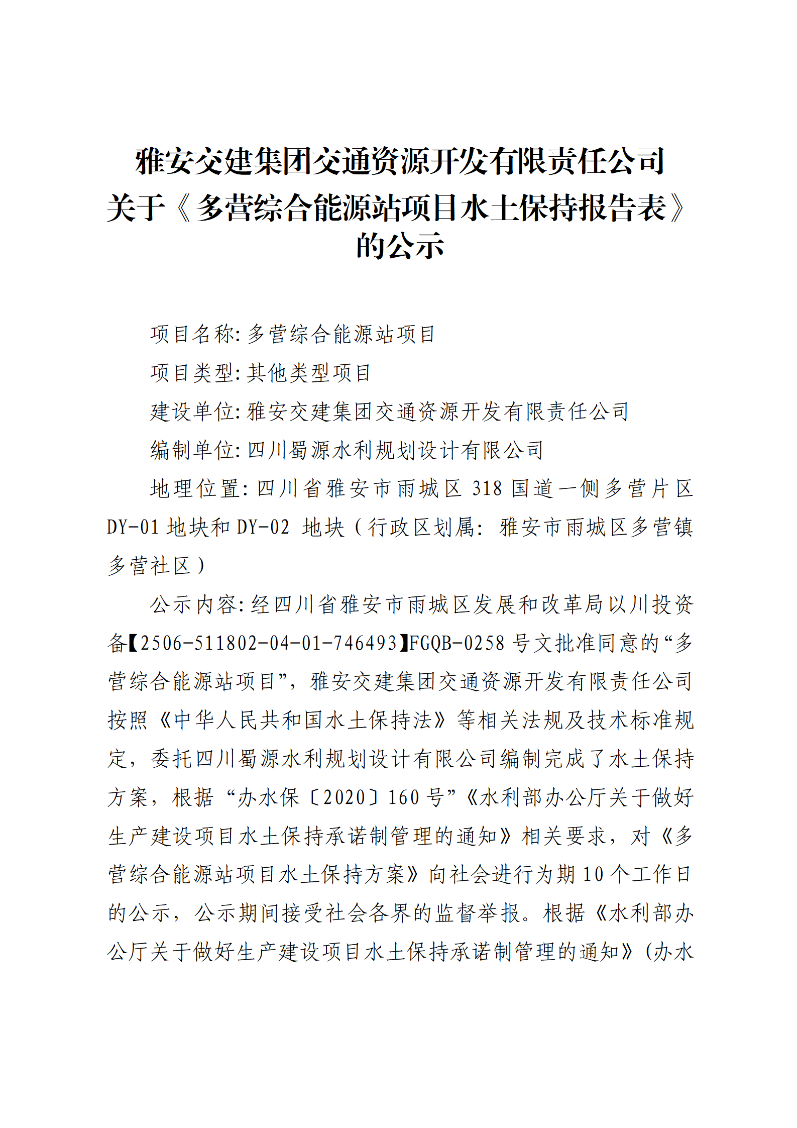 ÑŰ²½»½¨¼¯ˆF(tu¨¢n)½»Í¨ÙYÔ´é_°l(f¨¡)ÓÐÏÞØŸ(z¨¦)Èι«Ë¾ êP(gu¨¡n)ÓÚ¡¶¶à I¾CºÏÄÜÔ´Õ¾í—ĿˮÍÁ±£³Öˆó¸æ±í¡·µÄ¹«Ê¾