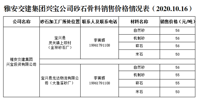 ÑŰ²½»½¨¼¯ˆF(tu¨¢n)ÅdŒš¹«Ë¾É°Ê¯¹ÇÁÏäNÊÛƒr¸ñÇé›r±í£¨2020.10.16£©