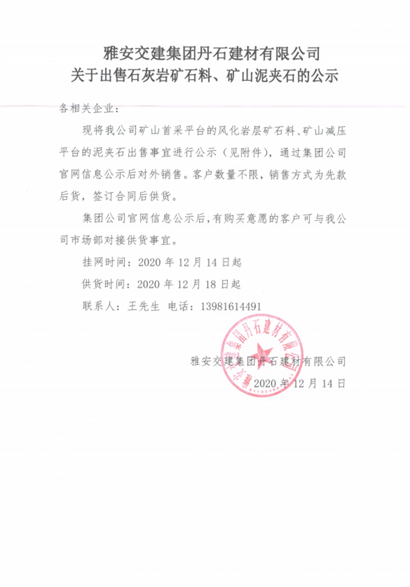 ÑŰ²½»½¨¼¯ˆF(tu¨¢n)µ¤Ê¯½¨²ÄÓÐÏÞ¹«Ë¾êP(gu¨¡n)ÓÚ³öÊÛʯ»Ò?gu¨©)rµVɽÁÏ¡¢µVɽÄàŠAʯµÄ¹«Ê¾
