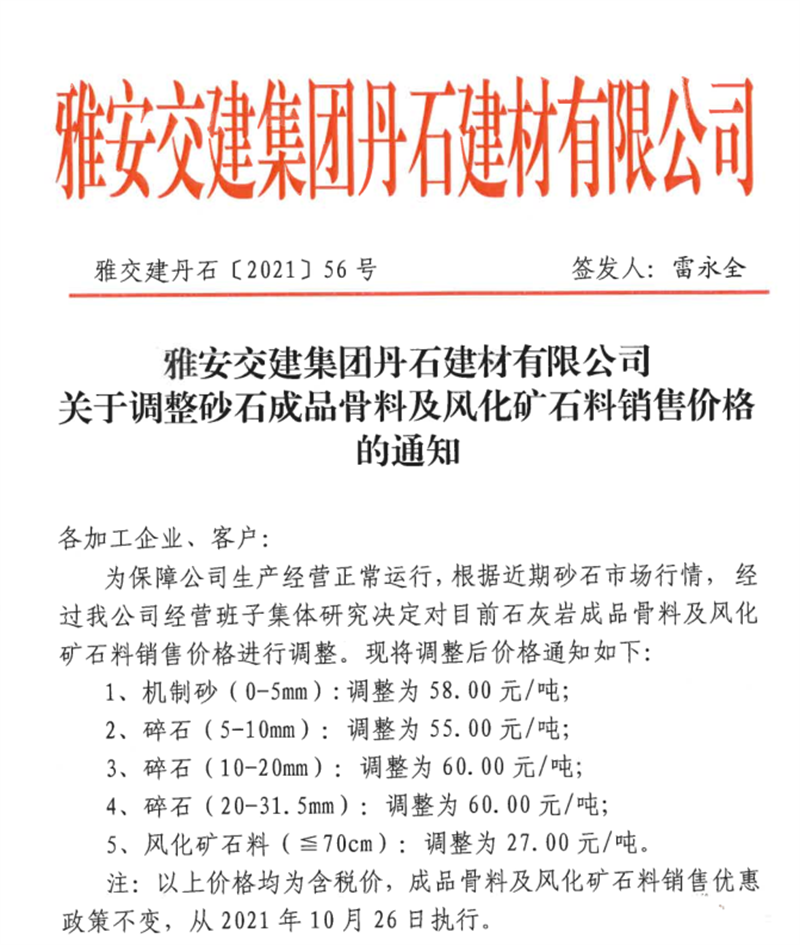 ÑŰ²½»½¨¼¯ˆFµ¤Ê¯¹«Ë¾êPÓÚÕ{Õû³ÉÆ·¹ÇÁϼ°ïL»¯µVʯÁÏäNÊÛƒr¸ñµÄ֪ͨ£¨2021.10.26£©