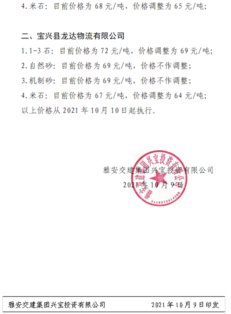 ÑŰ²½»½¨¼¯ˆFÅdŒš¹«Ë¾êPÓÚÕ{(di¨¤o)Õûɰʯ³ÉÆ·ÁÏäNÊÛƒr¸ñµÄ֪ͨ£¨2021.9.28£©