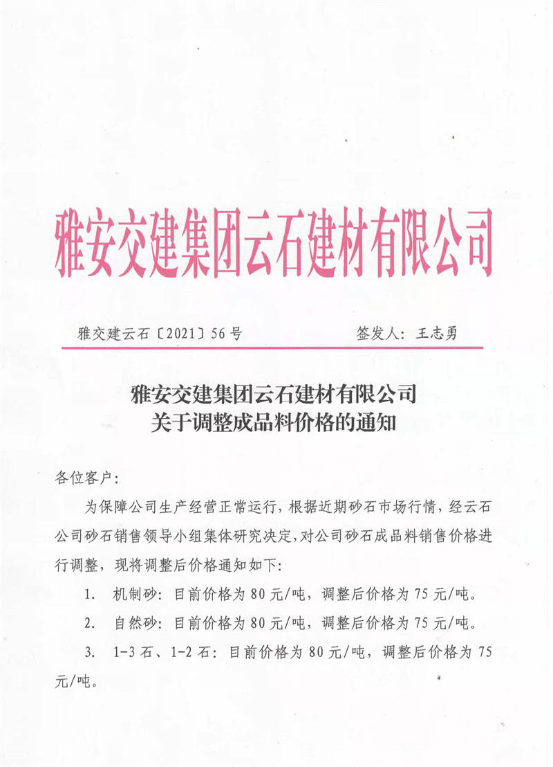 ÑŰ²½»½¨¼¯ˆF(tu¨¢n)ÅdŒš¹«Ë¾êP(gu¨¡n)ÓÚÕ{(di¨¤o)Õû³ÉÆ·ÁÏäNÊÛƒr¸ñµÄ֪ͨ£¨2021.11.2£©