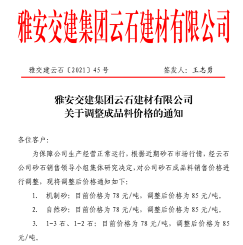 ÑŰ²½»½¨¼¯ˆF(tu¨¢n)ÔÆÊ¯¹«Ë¾êP(gu¨¡n)ÓÚÕ{(di¨¤o)Õû³ÉÆ·ÁÏäN(xi¨¡o)ÊÛƒr(ji¨¤)¸ñµÄ֪ͨ£¨2021.11.4£©