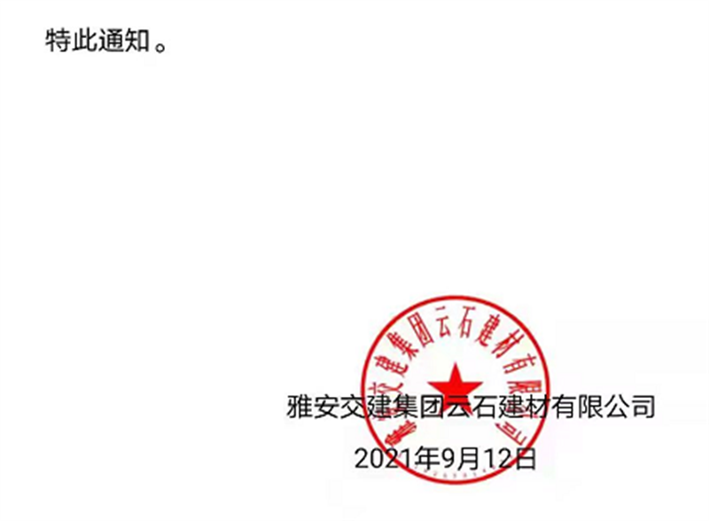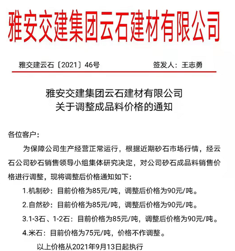 ÑŰ²½»½¨¼¯ˆFÔÆÊ¯¹«Ë¾êP(gu¨¡n)ÓÚÕ{(di¨¤o)Õû³ÉÆ·ÁÏäNÊÛƒr¸ñµÄ֪ͨ£¨2021.9.13£©