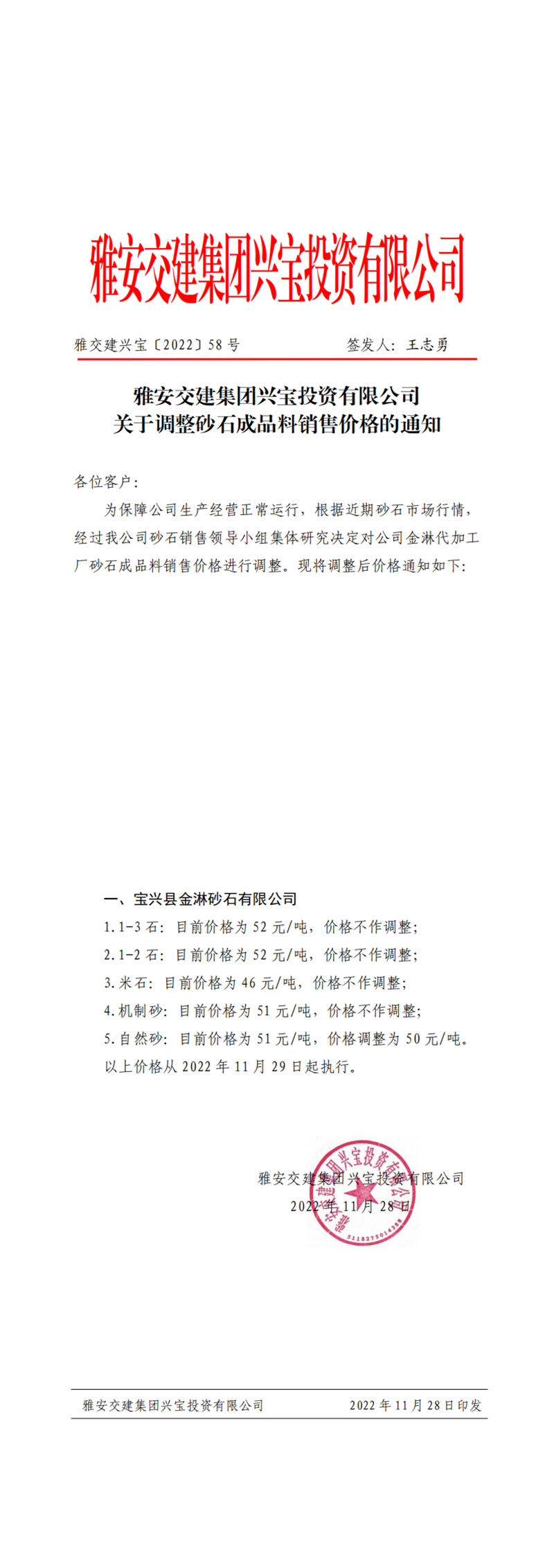 ÑŽ»½¨ÅdŒš¡²2022¡³62Ì–(h¨¤o) êP(gu¨¡n)ÓÚÕ{(di¨¤o)Õûɰʯ³ÉÆ·ÁÏäNÊÛƒr(ji¨¤)¸ñµÄ֪ͨ£¨2022-12-2£©